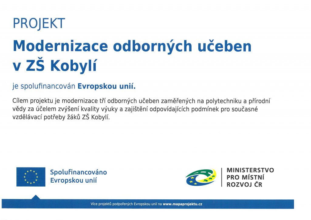 PROJEKT Modernizace odborných učeben v ZŠ Kobylí