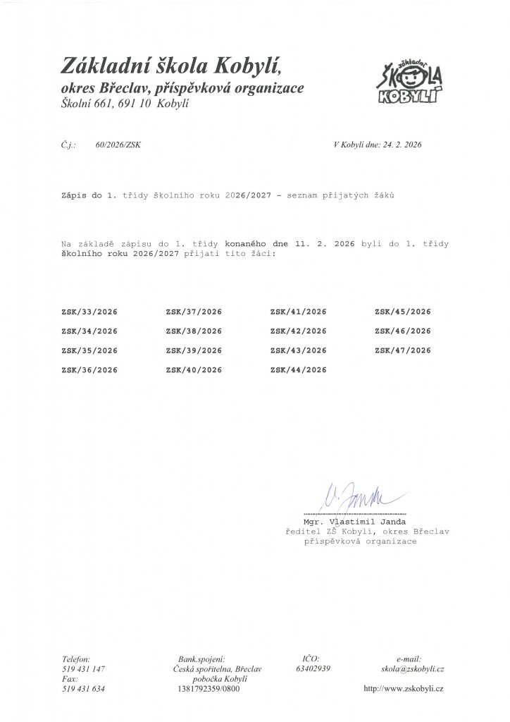 - Zápis do 1. třídy - pozvánka